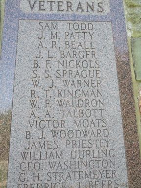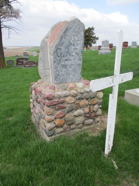 This granite monument is in the Dedham Cemetery. The only inscription is the "GAR." Look for the flagpole in the cemetery. It is located on the west side of the road just south of town and north of Highway 141. Thanks to SUVCW members Jim Grettenberg and Mike Carr for notification of this monument. Photo taken 5/9/18.