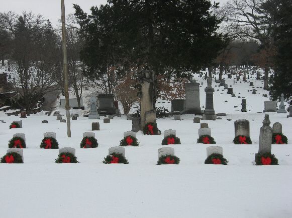 Oakland Cemetery has a living tree monument, dedicated on May 30, 1896, in the GAR Section of the Cemetery. The second photo shows the monument in the background with the “Wreaths across America” program which eventually plans to put a wreath by every veteran’s tombstone over the holidays. There are 27 CW Veterans buried nearby. There is also a plaque dedicated by the Daughters of Union Veterans. Oakland Cemetery is on the north side of town – turn right (east) off Governor Street onto Brown Street to the entrance. The monument is directly right of the entrance by the flagpole. The winter photo was taken 1/5/08, the living tree photo on 8/24/10 and the photos of the plaque on 8/3/20.