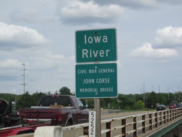 Highway 6 runs coast-to-coast and is named the Grand Army of the Republic Highway. The Iowa SUVCW has named 11 bridges on the Highway after Iowa CW Generals. There are also 29 GAR Highway markers across the state - an example is listed under Oakland in Pottawattamie County. This bridge is named after General John Corse, a native of Burlington, Iowa. He is best known for holding the fort at Allatoona Pass on October 5, 1864. He commanded the Federal Troops that successfully held off an intense Confederate attack. Also see the statue of Corse under Burlington in Des Moines County. The bridge crosses the Iowa River on Highway 6 on the south side of Iowa City. The photo was taken 5/12/12.