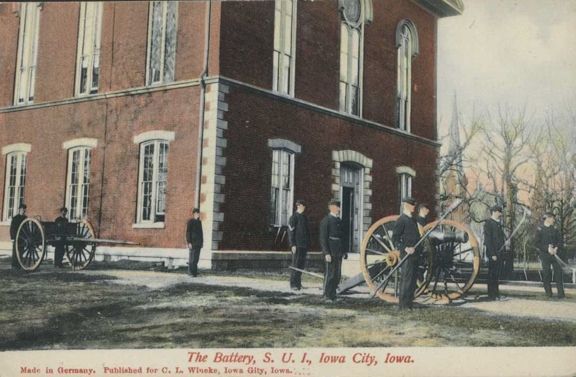There are two similar monuments flanking the steps at the Johnson County Courthouse. The one on the left of the steps has General John Logan’s Memorial Day Order of 1868. The one on the right has Lincoln’s Gettysburg Address. The monuments blend in with the impressive courthouse. The courthouse is just south of the business district on Clinton and Court Streets. The first two photos were taken 8/24/10 The photo of the small plaque above the Memorial Day Order was taken 8/3/20. In 2015 a wonderful old photo of the S.U.I. Battery was received - thanks to Danny Krock for sending this.