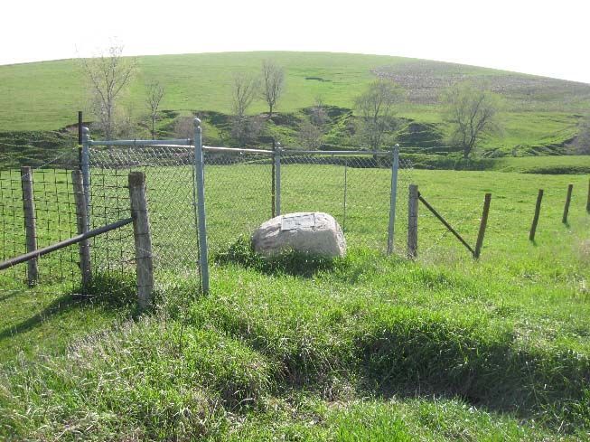 As a result of service in the Black Hawk War, Lincoln received a land grant in western Iowa. It is believed that he never saw the land in person. When he visited Council Bluffs in 1859 to consult with Grenville Dodge about a future transcontinental railroad, he referred to his land here but said he couldn't take the time to see it. This plaque marks the spot of the hilly land. About seven miles north of Denison and five miles south of Schleswig on Highway 59, go 1.8 miles east on Vernon Voss Road. The plaque is on the right or SW at the intersection of Vernon Voss and 1 Ave. Photos taken 5/4/08. Also see Tama County for land he owned there.