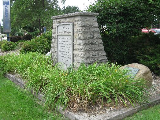 This monument was erected in 1911 and commemorates Abraham Lincoln’s visit to Council Bluffs in 1859 to consult with Grenville Dodge regarding a transcontinental railroad. The monument has a bronze plaque and is about 25 feet high. This spot overlooks the Missouri River and Omaha. Dodge told Lincoln that the best route was "Westward from Council Bluffs". Take Oakland Avenue north off Kanesville Blvd/Highway 6. The monument is to the left of the entrance to Fairview Cemetery. The photos were taken 9/1/08.