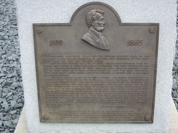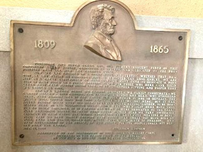 The Gettysburg Address plaque was dedicated by the WRC in 1930. Originally the cannon and plaque were together but were separated when the old courthouse was replaced about 25 years ago.