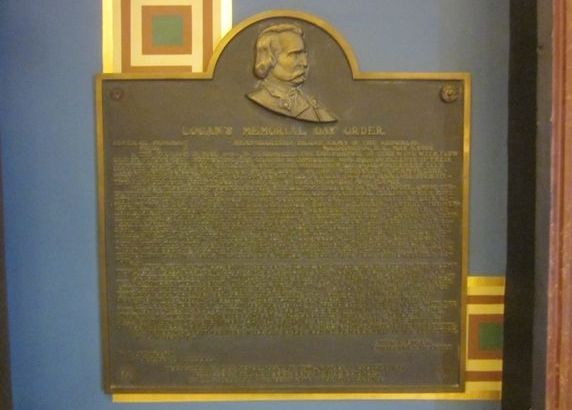 Around the Rotunda of the Iowa State Capital are two plaques. One is General John Logan's Memorial Day Order of 1868. The other is Abraham Lincoln's Gettysburg Address. The Memorial Day Order is on the NW corner of the Rotunda, the Gettysburg Address is on the SE corner, and the flag display case is on the NE corner. The photos were taken 4/22/17.