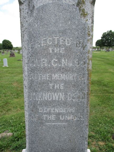 This monument was erected by the WRC. It is located in the Wapello Cemetery just north and west of town. There are 4 sunken cannonballs around the monument. Thank you to Steve Hanken for information. Follow 100th Street west off Highway 61 to the cemetery. Then take the left entrance, drive straight ahead, and the monument is on the right side of the road. Photos taken 8/12/20.