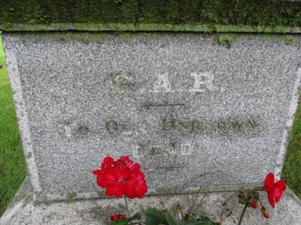 This monument is in Evergreen Cemetery in Emmetsburg. The inscription on the upper portion reads, "GAR To Our Unknown Dead." The lower inscription is a Latin quotation, "Dum Tagent Clamant," meaning their silence speaks louder than words. Thank you to SUVCW member Don McGuire for notification of the monument and for the photo. The cemetery is located just south of town off Highway 4 - take the main entrance and the monument is straight ahead. The first photo was taken 10/20/17 - the close-up photos were taken 9/18/18.