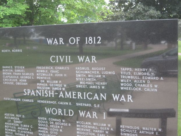 This black granite memorial honors Veterans from all wars. The 23 Civil War soldiers from the region are inscribed on the monument. It is located in the Conrad Cemetery at the west entrance to town. Photos taken 7/2/13.