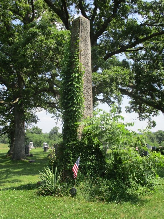 This monument is about 16 feet high. It is located NW of Richland. This town has three cemeteries in same location - Friends, Highland and Old Methodist. Take Richland Street north past Friends Cemetery to Highland Cemetery. The first two photos were taken 8/2/08 - the final photo taken 7/8/20 shows, unfortunately, that vegetation growth has covered the inscriptions on the front of the monument.
