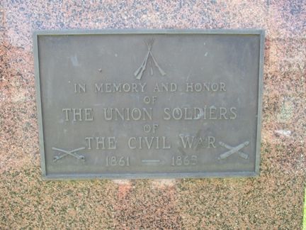 This monument is close to several CW Veteran tombstones in Pleasant Grove Cemetery (also called West Cemetery.) It is a 2 by 4 foot gray granite memorial with inscriptions on both the east and west sides. Old photos show a much larger memorial but it became dilapidated and was replaced with this one in 1983. This cemetery is on the west side of town – just north of Highway 92. It was difficult to find the monument in the cemetery – driving on the main road through the cemetery – take the next-to-last side road west to locate it. The first photo was taken 11/29/07 - the others 7/8/20.
