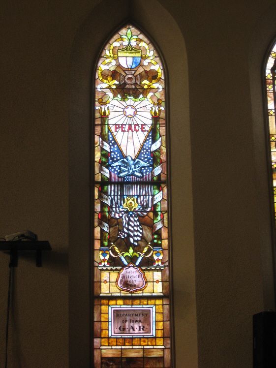 Marion - GAR Stained Glass Window GPS Coordinates: 42.034240 by -91.596616