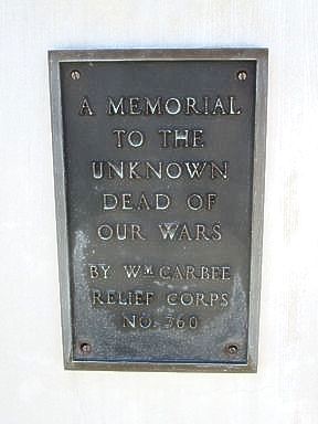 This is a 6 foot concrete monument with a plaque or medallions on four sides. These are GAR, Spanish-American War and American Legion medallions and a WRC unknown soldier plaque. The Springville Cemetery is east of town. The monument is near the maintenance shed. Photos taken 8/23/19.