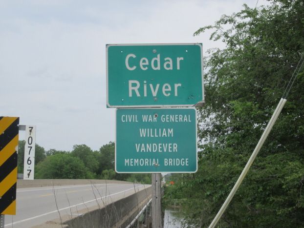 Highway 6 runs coast-to-coast and is named the Grand Army of the Republic Highway. The Iowa SUVCW has named 11 bridges on the Highway after Iowa CW Generals. There are also 29 GAR Highway markers across the state - an example is listed under Oakland in Pottawattamie County. This bridge is named after William Vandever. He was an Iowa Congressman from Dubuque before the War. He was the Colonel of the 9th Iowa Infantry Regiment and then was promoted to Brigadier General and Brigade Commander. He was at Pea Ridge, Vicksburg and Bentonville. The bridge crosses the Cedar River on Highway 6 just southwest of Moscow. Photo taken 5/12/12.