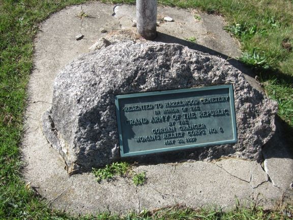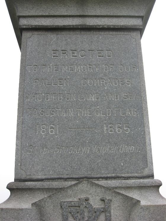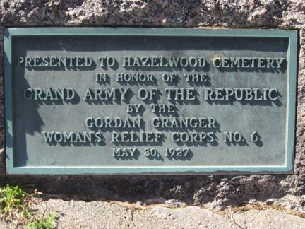 This monument is in the Montezuma Masonic IOOF Cemetery. The inscription on the top indicates the monument was erected by the GAR, the "S of V" and the Ladies of the GAR. Thank you to Dann Hayes for notification of this monument. The cemetery is in the SW region of town - take W. Main to High Street - then south on High Street. The monument is straight ahead just east of the maintenance shed. Photos taken 10/9/17.