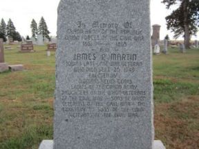 Thus has a long and active life drawn to its close, and we who knew him as the best of fathers will lovingly cherish his memory. The Allied Orders of the Grand Army of the Republic (Daughters of Union Veterans of the Civil War, Sons of Union Veterans of the Civil War, Woman's Relief Corps, Ladies of the Grand Army of the Republic, and Auxiliary of the Sons of Union Veterans of the Civil War) placed a monument in memory of James P. Martin in the town of Sutherland, Iowa.