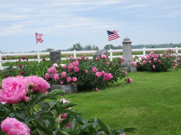 This plaque recognizes those buried here in unmarked graves from the town of Burris City (which no longer exists) and Confederate soldiers who are said to have died while being transported to prison at Rock Island. Burris City, at the confluence of the Iowa and Mississippi Rivers, was flooded in 1858 and many residents died during cholera or yellow fever epidemics. Mallory Cemetery is a beauitiful little cemetery about 9 miles southeast of Wapello on County Road 99. Thank you to Steve Hanken for notification of this monument. Photos taken 5/28/11.