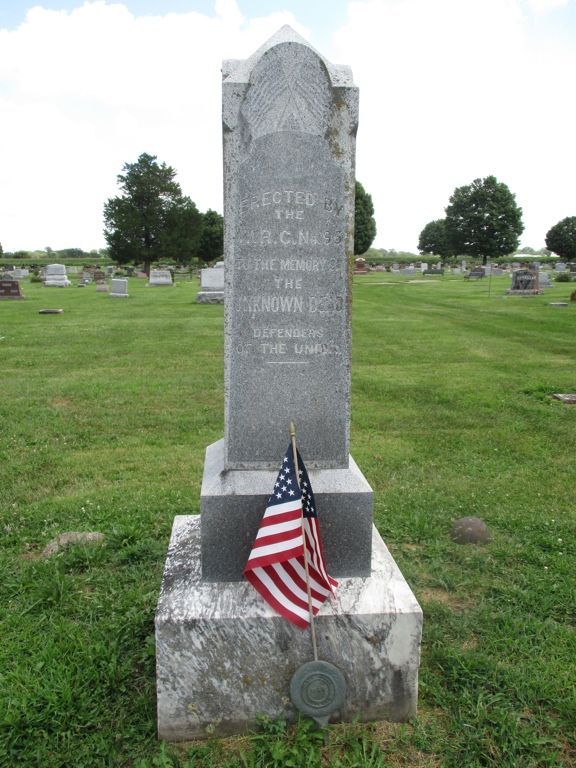 This monument was erected by the WRC. It is located in the Wapello Cemetery just north and west of town. There are 4 sunken cannonballs around the monument. Thank you to Steve Hanken for information. Follow 100th Street west off Highway 61 to the cemetery. Then take the left entrance, drive straight ahead, and the monument is on the right side of the road. Photos taken 8/12/20.