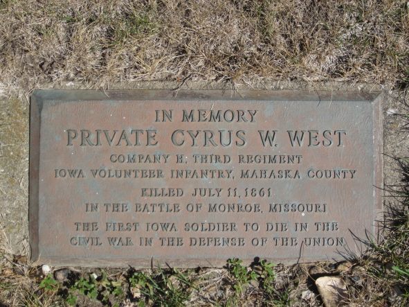 Oskaloosa - Private Cyrus W. West Plaque at Nelson Pioneer Farm - GPS Coordinates: 41.332567 by -92.621150
