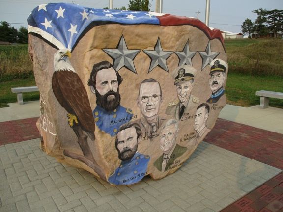 The final photo shows the Mahaska County Freedom Rock. It includes a number of notable military leaders from the region including Samuel Rice and his brother Elliott Rice. Both practiced law together in Oskaloosa before the War. Elliott joined the 7th Iowa Infantry in 1861 as a Corporal and left in 1865 as a Brevet Major General, participating in many battles in the Western Theater of the War. It was reported he received seven wounds. The Freedom Rock, by artist Ray "Bubba" Sorensen, is on the east edge of Oskaloosa off the south side of Highway 92. The photo was taken 10/5/20.