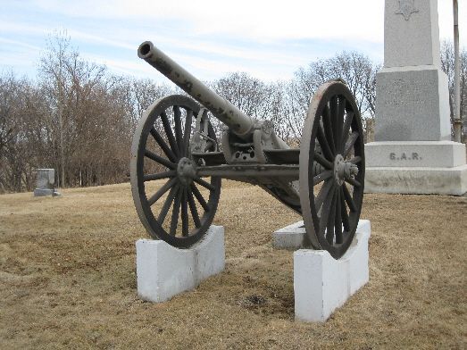 A non-Civil War cannon is located in front of the soldier. It is a 3.2-inch US M1897 field gun - thank you to Tom Batha for information about this cannon. The cemetery is north of town on Highway 59. Photos taken 9/1/08, 2/8/09, and 9/1/12. Thank you to Richard Hickman for the most recent photo of the soldier monument.