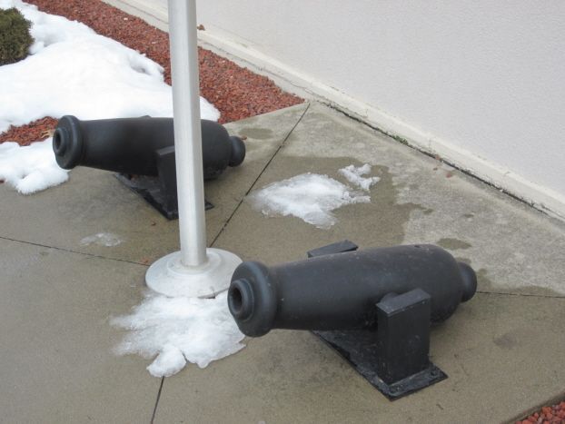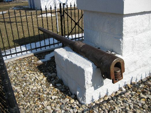 Gunnade Cannons - these two small cannons set in front of the American Legion Post in Gilbertville. Both are made of cast iron, 28 inches long with a 2.125-inch bore diameter. There are no visible markings. Thanks to Dennis Bresson and his book "Iowa Civil War Cannons" for this information. The location is on the SE side of town on 6th Street off 10th Avenue. Photo taken 2/1/12.