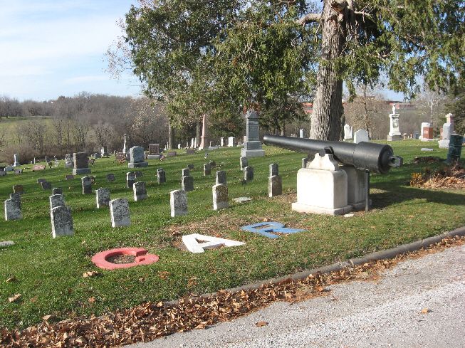 This is a wonderful little corner of the cemetery with two large Parrott cannons, a granite monument, a bronze plaque and tombstones of Civil War veterans. The cannons are 4.2-inch, 30 pounder Army Parrott rifles cast at the West Point Foundry - one in 1863 and one in 1864. This area is located in the NW corner of a large cemetery. Take Monona Street south off Mamie Eisenhower Avenue or take Forest off S Greene St. to the Cemetery.