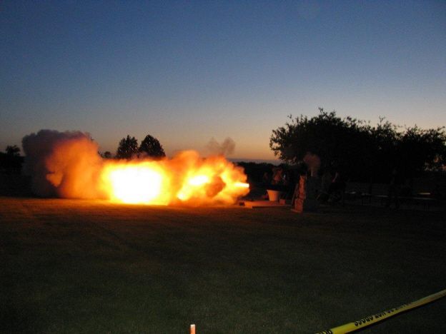 Don Gage reports that he has fired the cannons on every Memorial Day weekend since 2000, the first time they had been fired in 75 years. Previously they were fired at 5:00 A.M. on July 4 every year. Don also reports that the planter between the cannons is an inverted brass bell that would sound an alarm in the city until 1910 when it was included as part of the monument by the WRC. Thanks to Danny Krock for the spectacular photo of the firing at dusk on the Saturday before Memorial Day on 5/29/10.